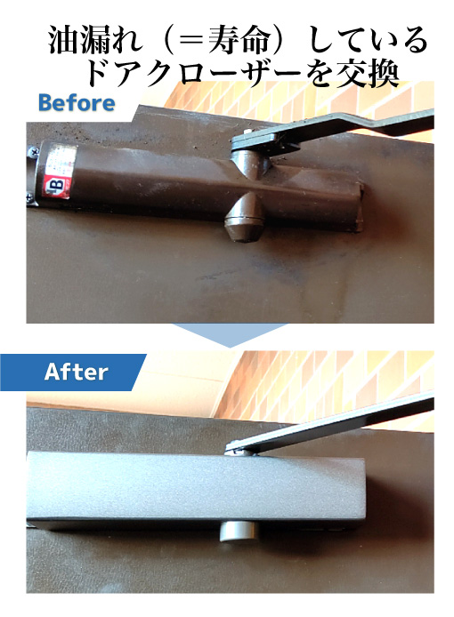 ドアクローザー本体から油が漏れている